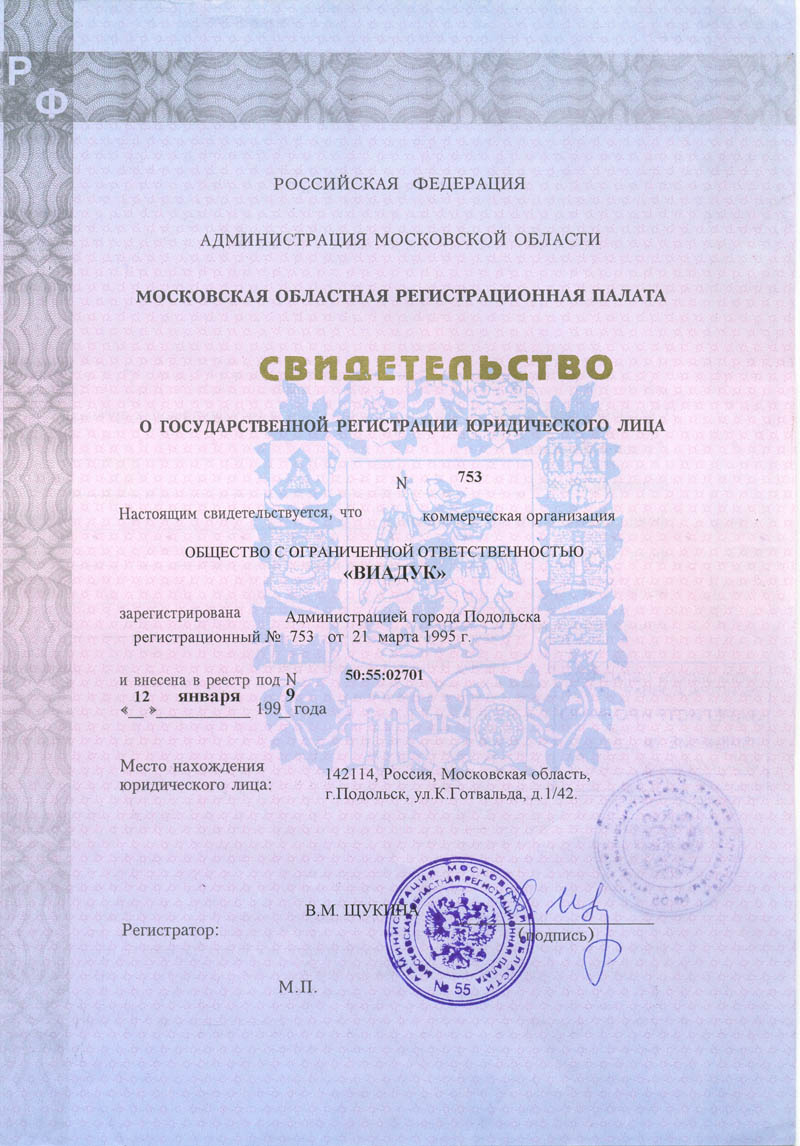 ООО “Виадук” зарегистрировано 21 марта 1995 года.